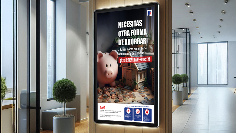 Campañas audiovisuales para pantallas internas.